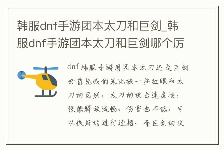 - 韓服dnf手游團(tuán)本太刀和巨劍_韓服dnf手游團(tuán)本太刀和巨劍哪個(gè)厲害