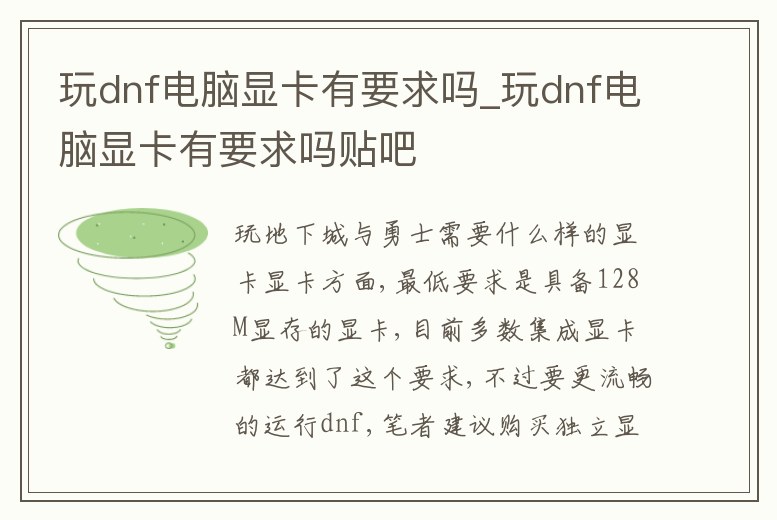 玩dnf電腦顯卡有要求嗎_玩dnf電腦顯卡有要求嗎貼吧
