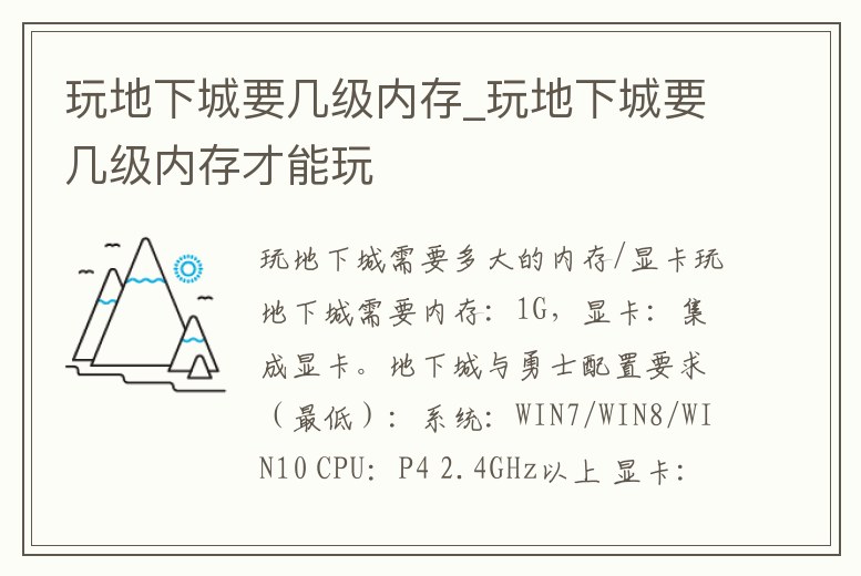 玩地下城要幾級內存_玩地下城要幾級內存才能玩