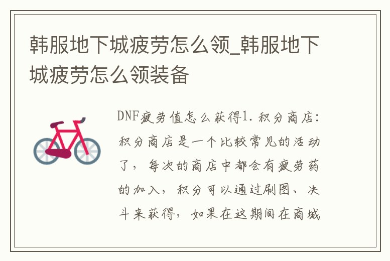 韓服地下城疲勞怎么領_韓服地下城疲勞怎么領裝備