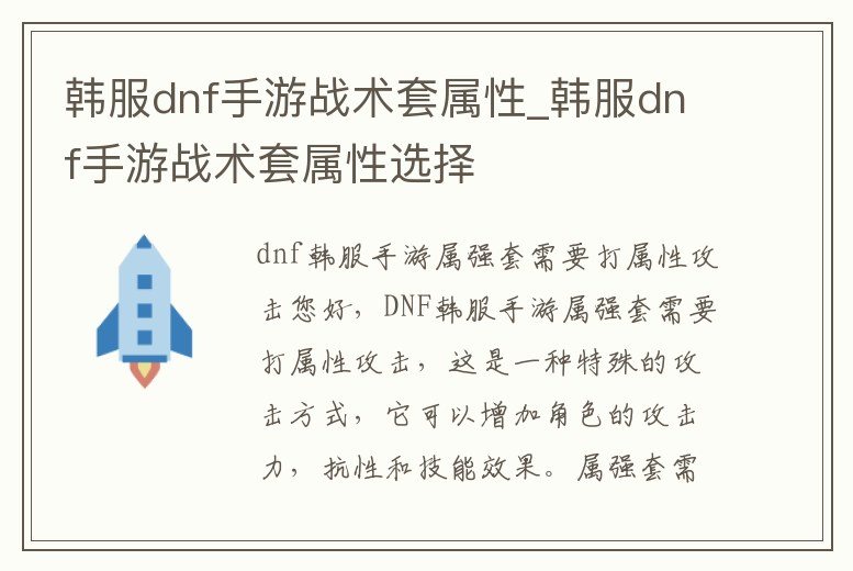 韓服dnf手游戰術套屬性_韓服dnf手游戰術套屬性選擇