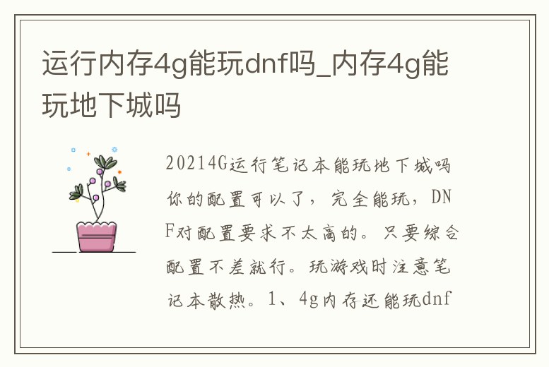 運行內存4g能玩dnf嗎_內存4g能玩地下城嗎