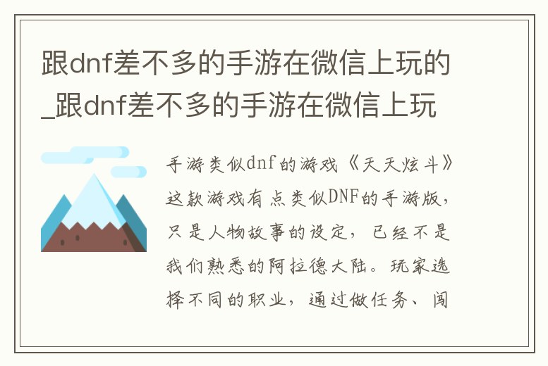 跟dnf差不多的手游在微信上玩的_跟dnf差不多的手游在微信上玩的是什么