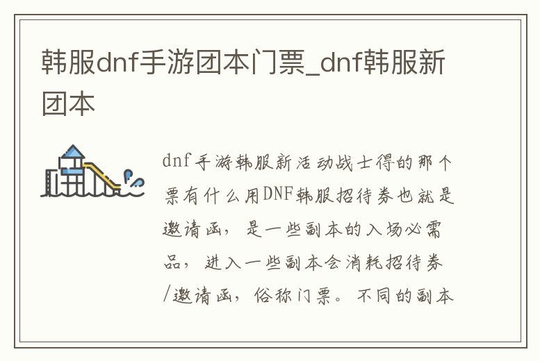 DNF韓服招待券也就是邀請函,是一些副本的入場必需品,進(jìn)入一些副本會消耗招待券/邀請函,俗稱門票。不同的副本有其對應(yīng)的招待券/邀請函。