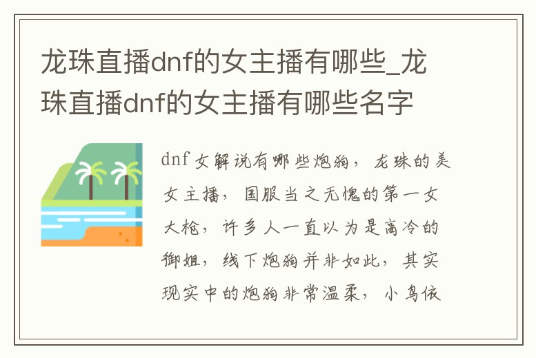 龍珠直播dnf的女主播有哪些_龍珠直播dnf的女主播有哪些名字