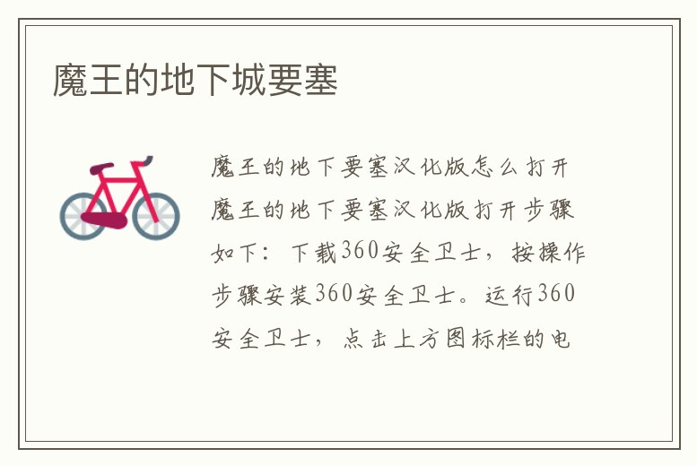 魔王的地下要塞漢化版怎么打開