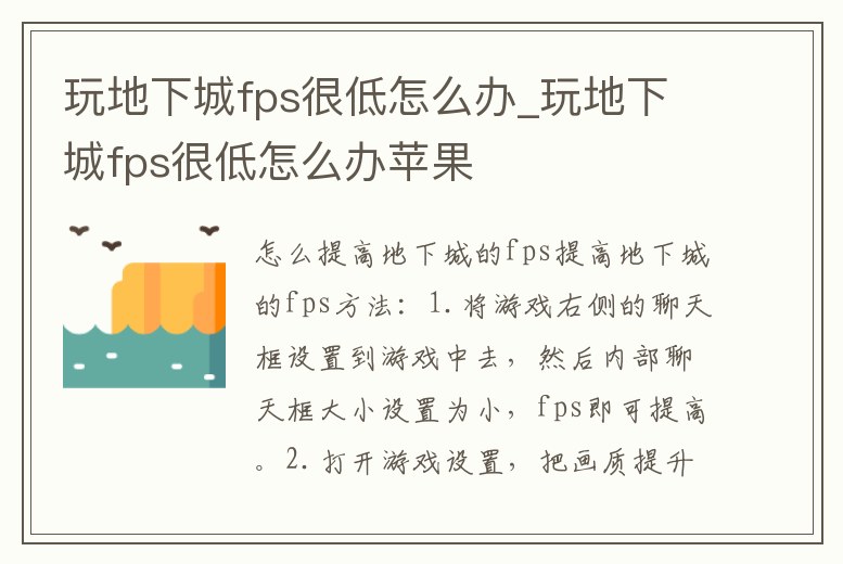玩地下城fps很低怎么辦_玩地下城fps很低怎么辦蘋果