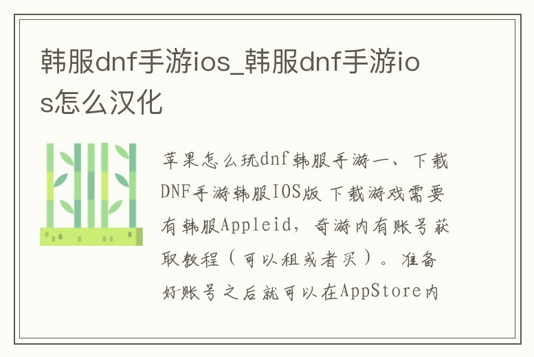 韓服dnf手游ios_韓服dnf手游ios怎么漢化