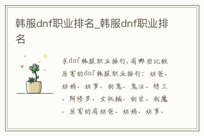 韓服dnf職業(yè)排名_韓服dnf職業(yè)排名