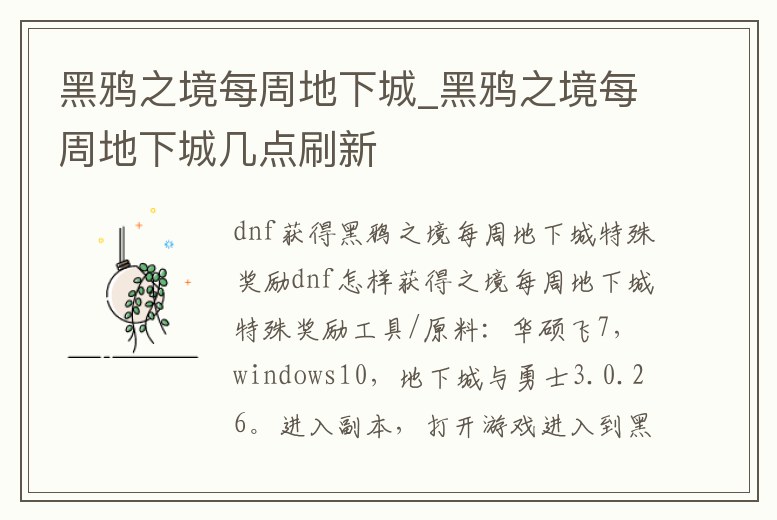 黑鴉之境每周地下城_黑鴉之境每周地下城幾點刷新