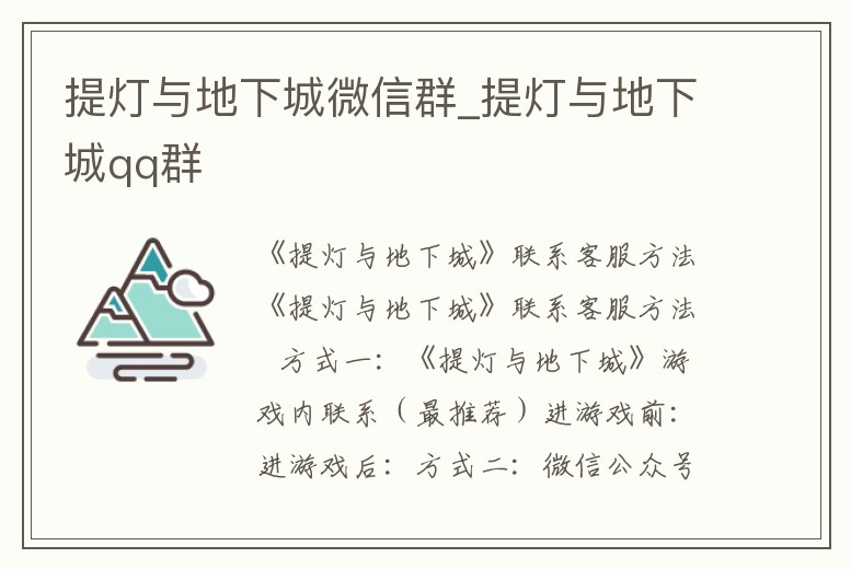 提燈與地下城微信群_提燈與地下城qq群