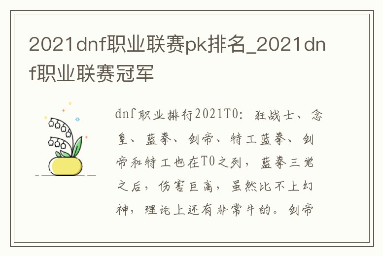 2、《dnf》職業排行2021是什么