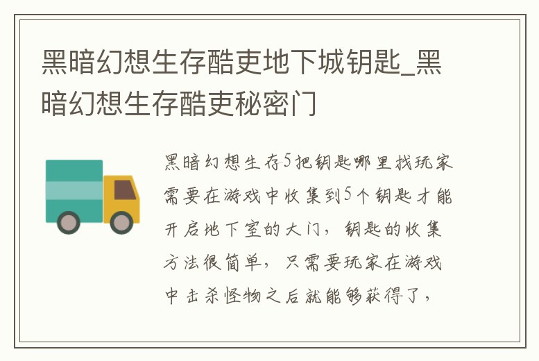 黑暗幻想生存酷吏地下城鑰匙_黑暗幻想生存酷吏秘密門