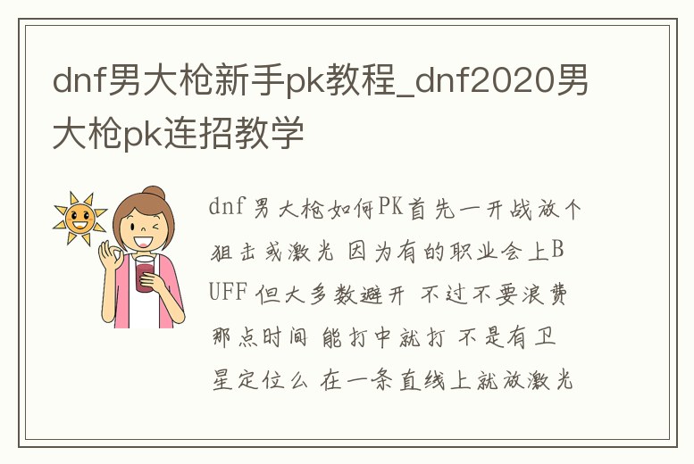 dnf男大槍新手pk教程_dnf2020男大槍pk連招教學