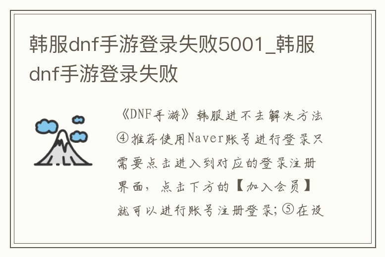 韓服dnf手游登錄失敗5001_韓服dnf手游登錄失敗