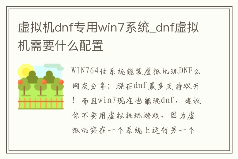 虛擬機dnf專用win7系統_dnf虛擬機需要什么配置
