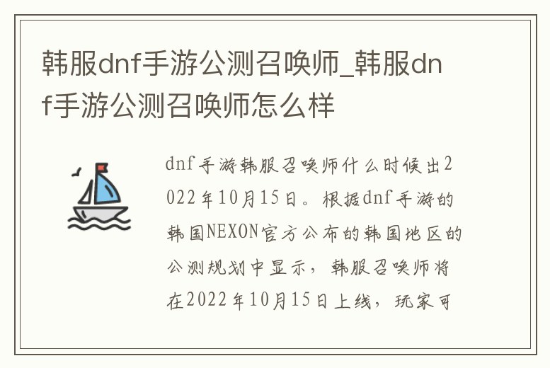 1、dnf韓服手游召喚師什么時候出