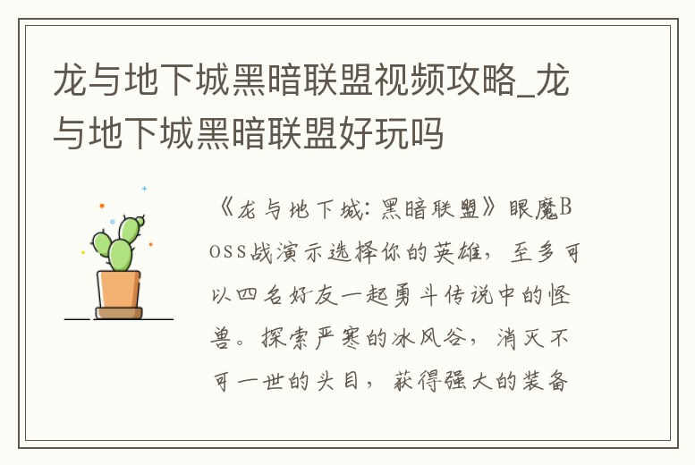 龍與地下城黑暗聯盟視頻攻略_龍與地下城黑暗聯盟好玩嗎