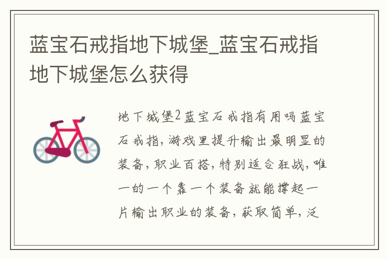 藍(lán)寶石戒指地下城堡_藍(lán)寶石戒指地下城堡怎么獲得