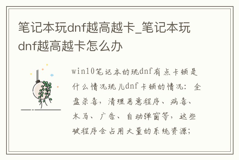 筆記本玩dnf越高越卡_筆記本玩dnf越高越卡怎么辦