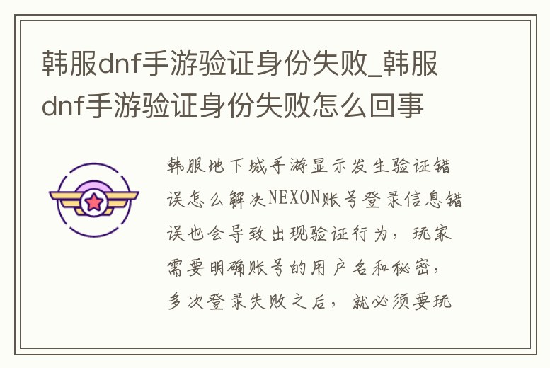 韓服dnf手游驗證身份失敗_韓服dnf手游驗證身份失敗怎么回事