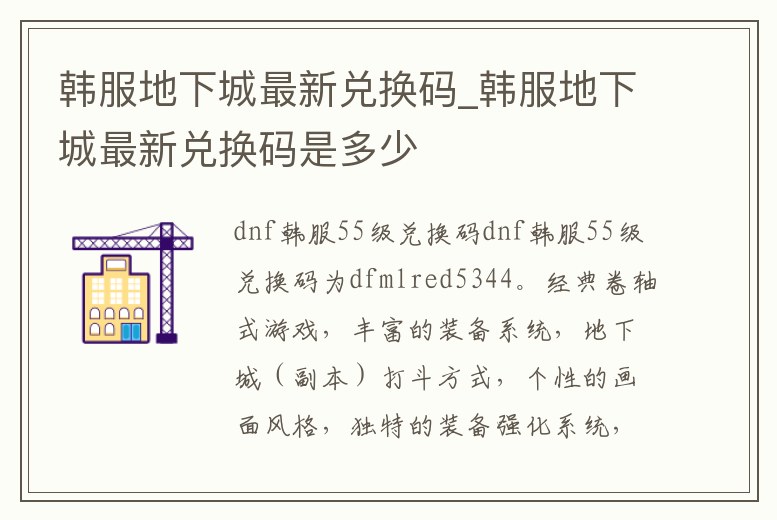 韓服地下城最新兌換碼_韓服地下城最新兌換碼是多少