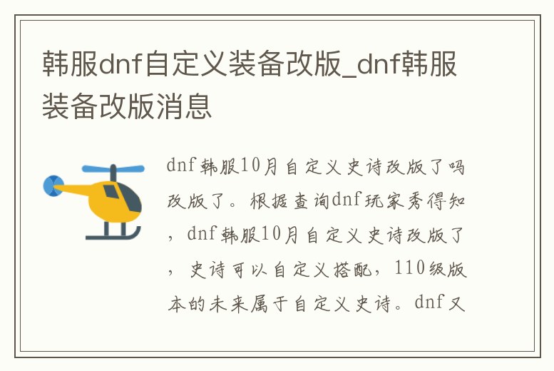 韓服dnf自定義裝備改版_dnf韓服裝備改版消息