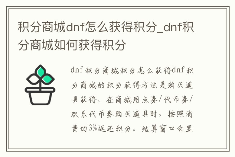 - 積分商城dnf怎么獲得積分_dnf積分商城如何獲得積分