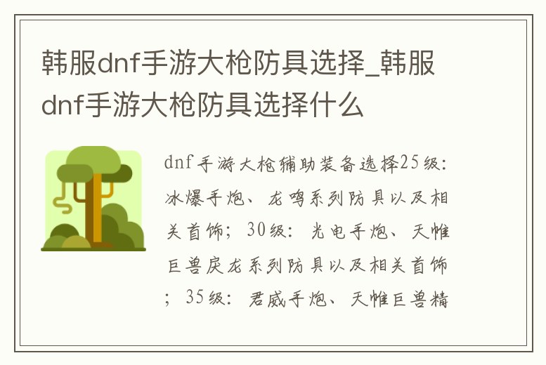 韓服dnf手游大槍防具選擇_韓服dnf手游大槍防具選擇什么