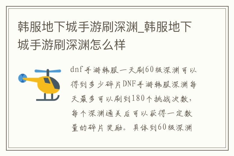 dnf手游韓服一天刷60級深淵可以得到多少碎片