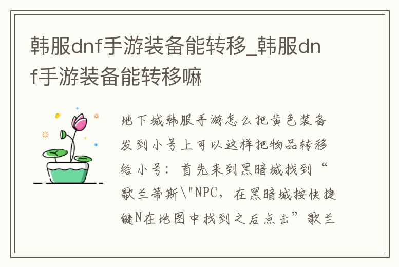 韓服dnf手游裝備能轉移_韓服dnf手游裝備能轉移嘛