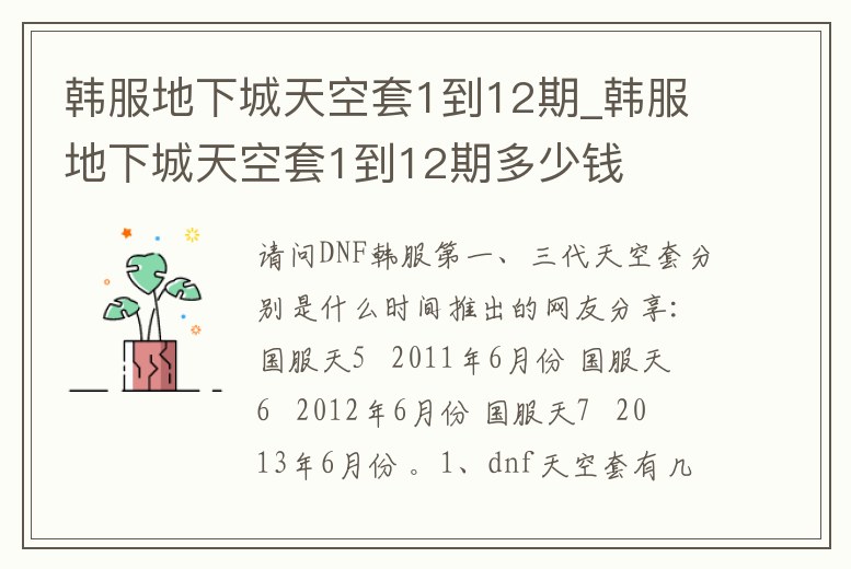 韓服地下城天空套1到12期_韓服地下城天空套1到12期多少錢