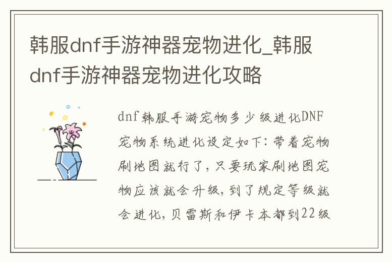 韓服dnf手游神器寵物進化_韓服dnf手游神器寵物進化攻略
