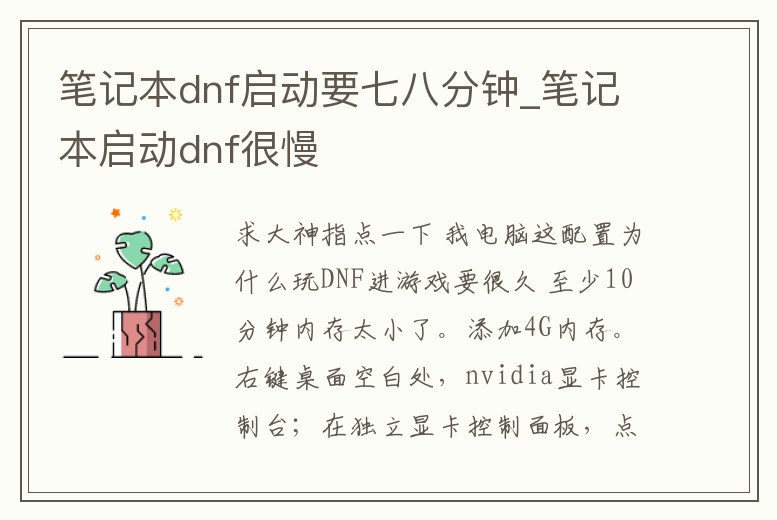 6、筆記本玩DNF很卡,游戲啟動也很慢。需要換哪些配置