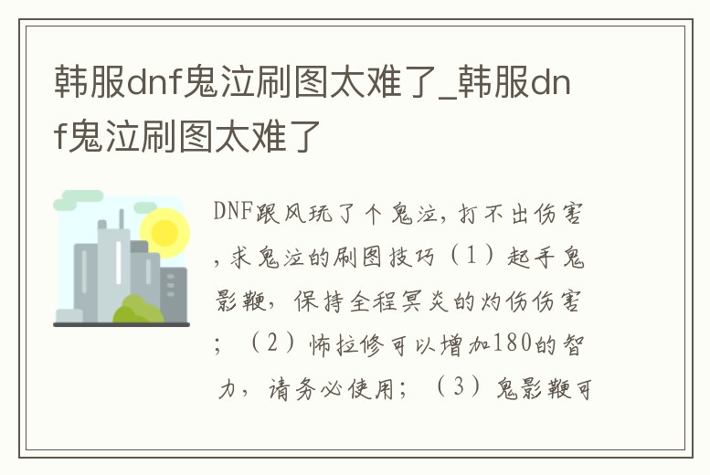 韓服dnf鬼泣刷圖太難了_韓服dnf鬼泣刷圖太難了