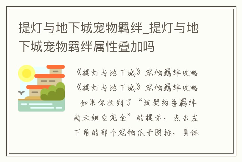 - 提燈與地下城寵物羈絆_提燈與地下城寵物羈絆屬性疊加嗎