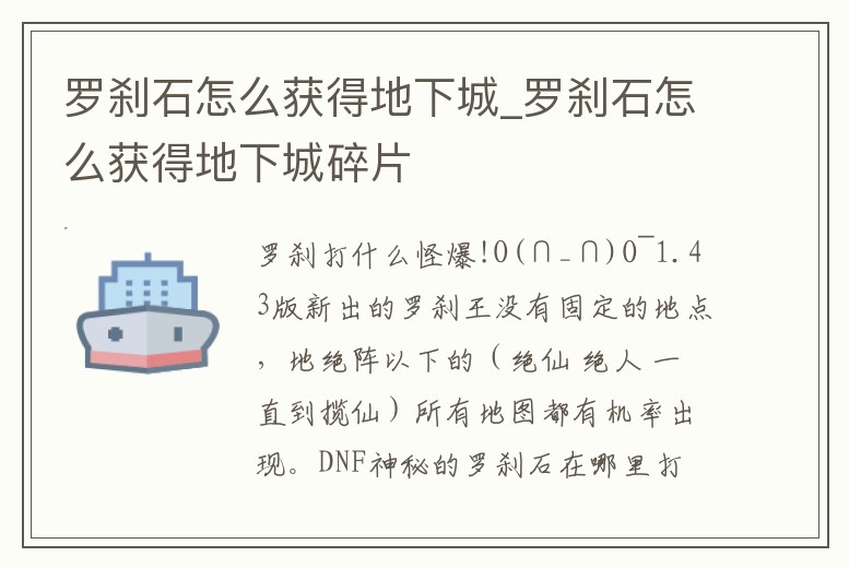 - 羅剎石怎么獲得地下城_羅剎石怎么獲得地下城碎片