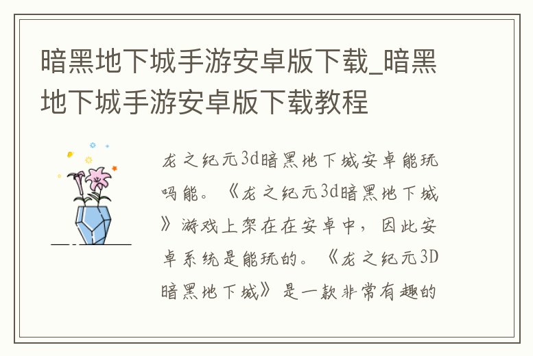 龍之紀元3d暗黑地下城安卓能玩嗎