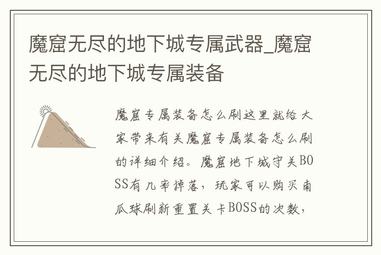 魔窟無盡的地下城專屬武器_魔窟無盡的地下城專屬裝備