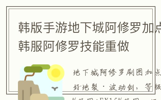 韓版手游地下城阿修羅加點_dnf韓服阿修羅技能重做