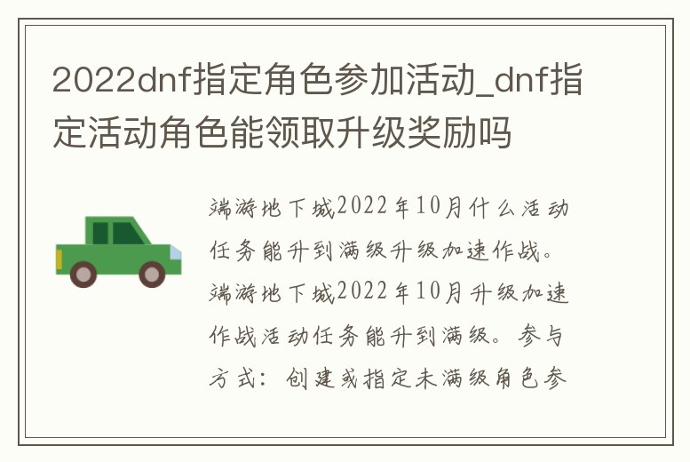 - 2022dnf指定角色參加活動_dnf指定活動角色能領取升級獎勵嗎