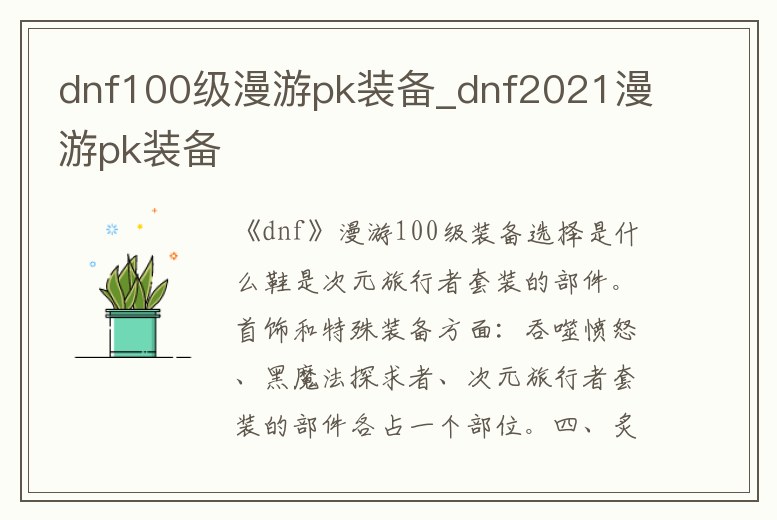 dnf100級漫游pk裝備_dnf2021漫游pk裝備
