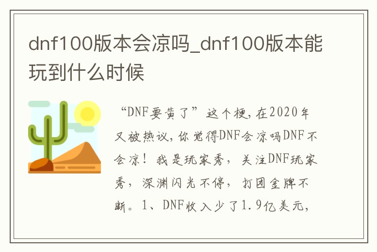 dnf100版本會涼嗎_dnf100版本能玩到什么時候