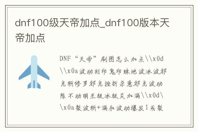 2、天帝怎么加點 DNF國服起源版本天帝加點攻略