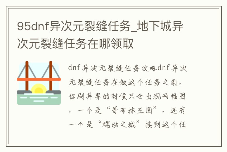 95dnf異次元裂縫任務_地下城異次元裂縫任務在哪領取