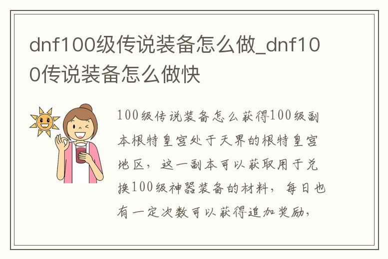 dnf100級傳說裝備怎么做_dnf100傳說裝備怎么做快