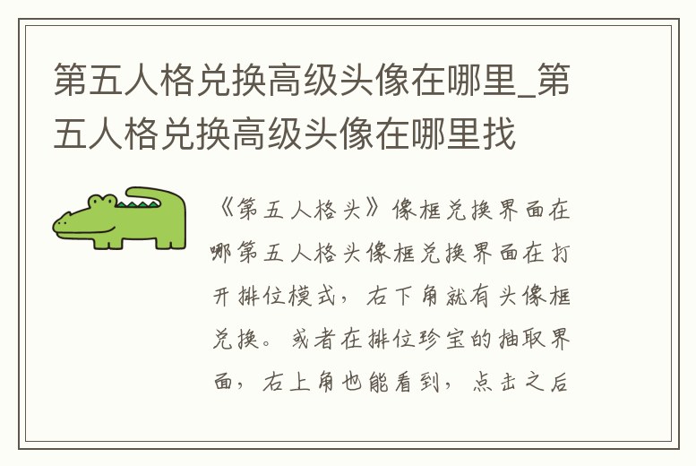 第五人格頭像框兌換券可以用來兌換相應的頭像框。打開排位模式,在右下角便可以找到兌換頭像框的功能按鈕。或者在排位珍寶的抽取界面的右上角,也可以打開頭像框兌換界面。