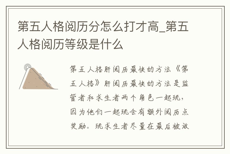 - 第五人格閱歷分怎么打才高_(dá)第五人格閱歷等級(jí)是什么