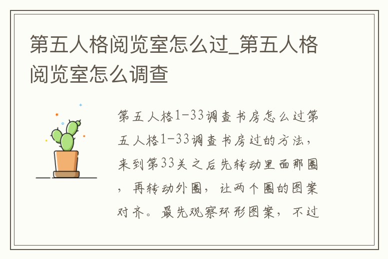 第五人格閱覽室怎么過_第五人格閱覽室怎么調查