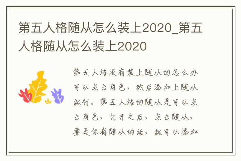第五人格隨從怎么裝上2020_第五人格隨從怎么裝上2020
